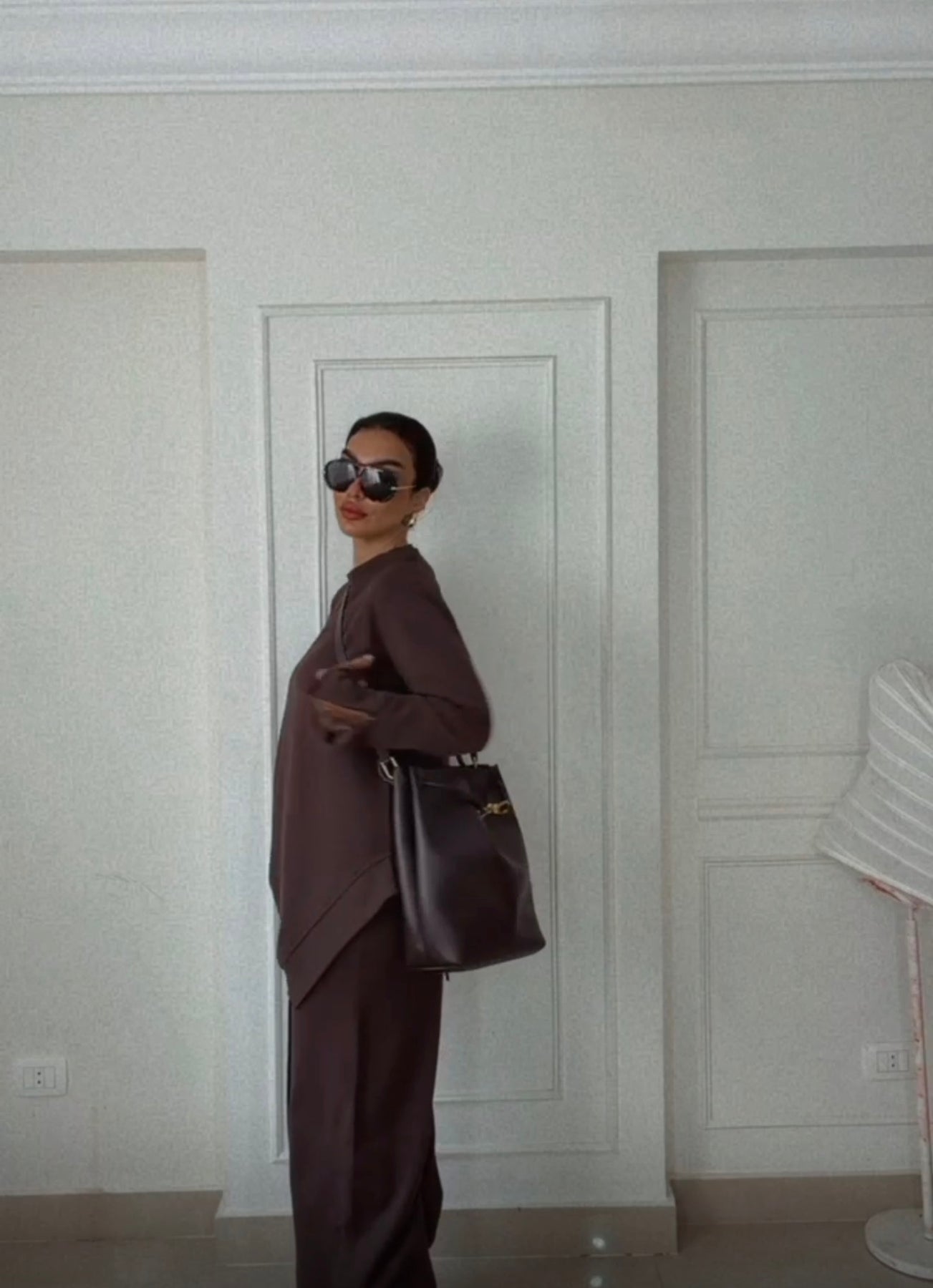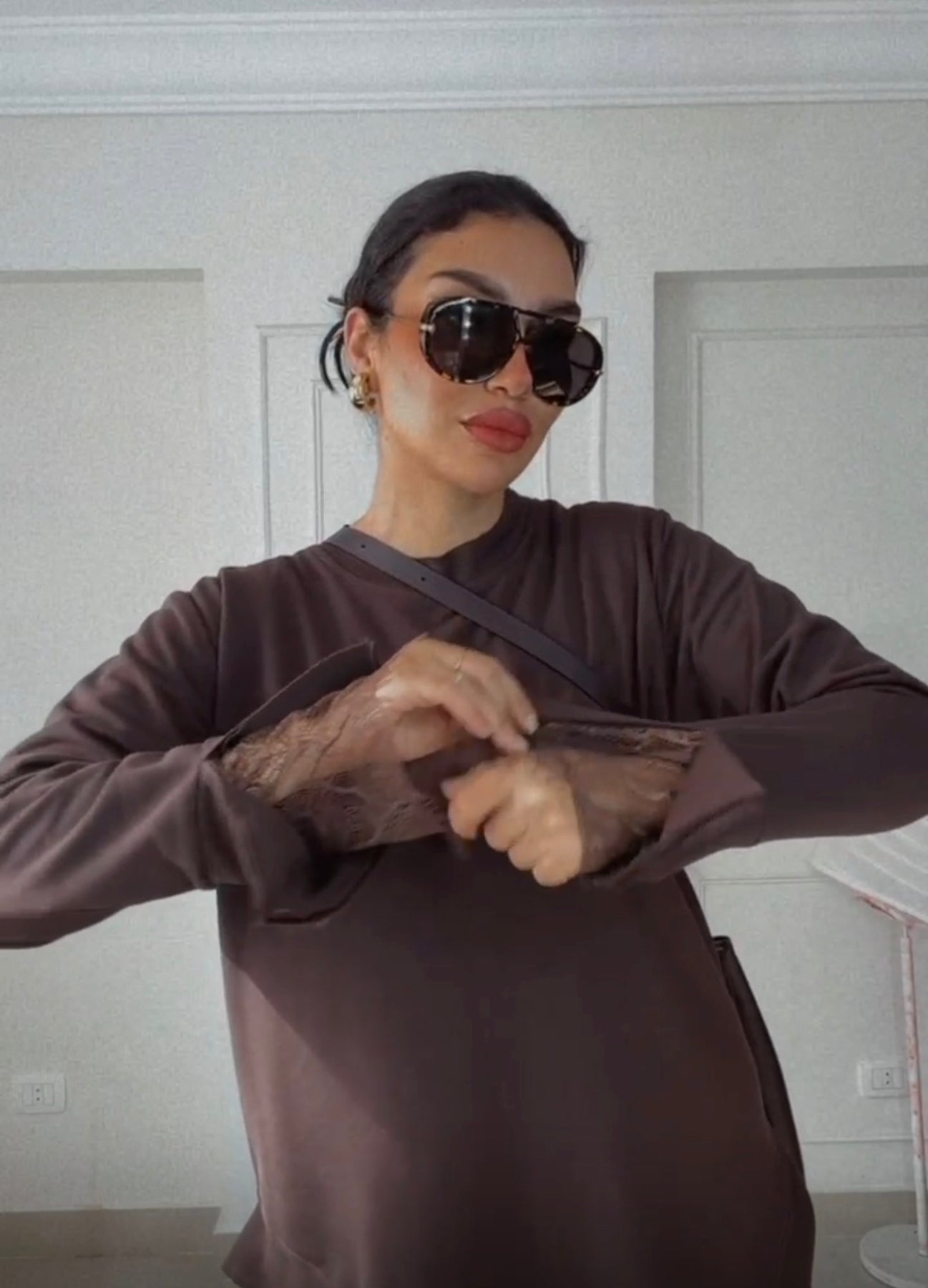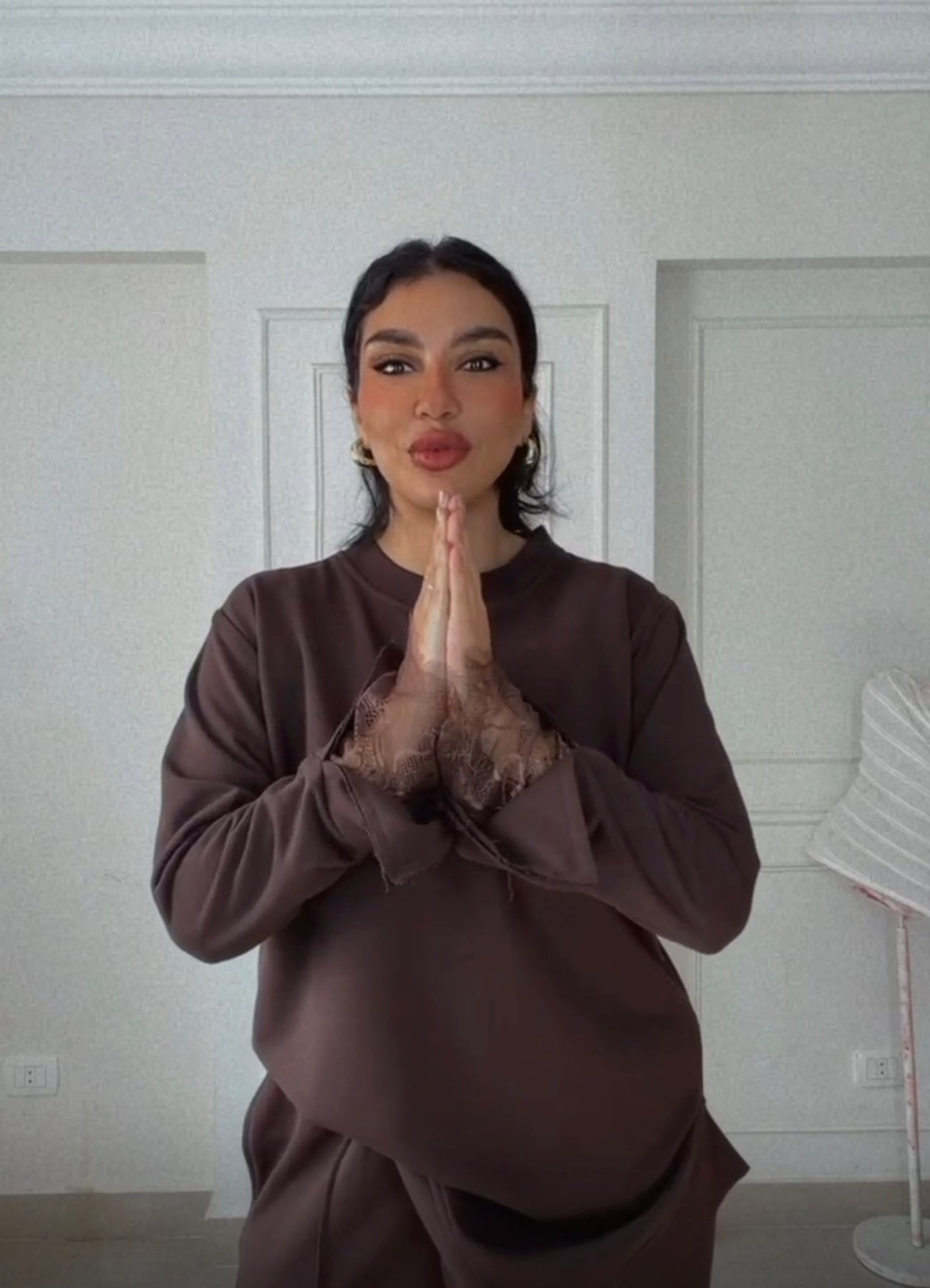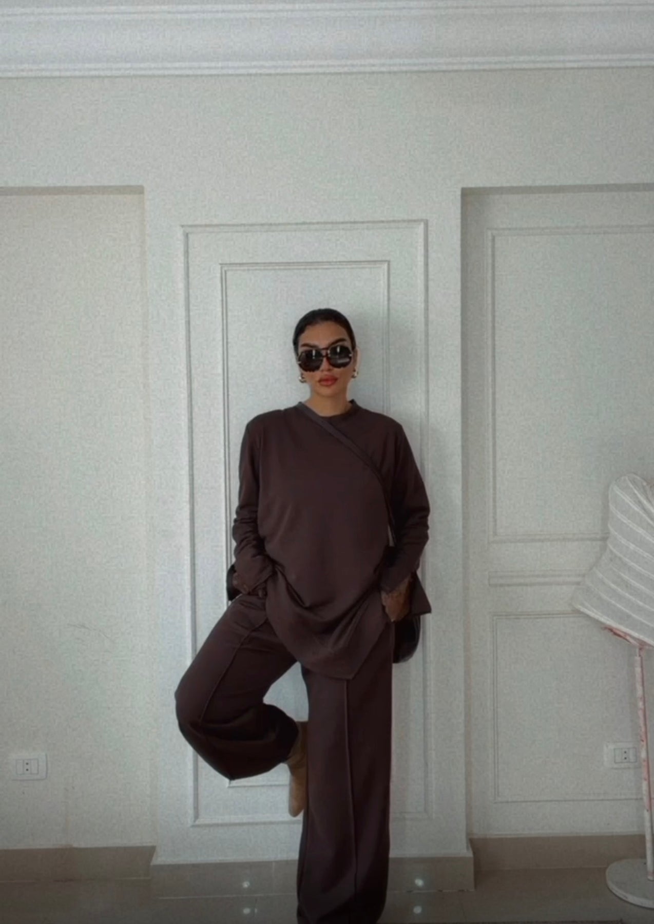 Brown comfy set with lace cuffs