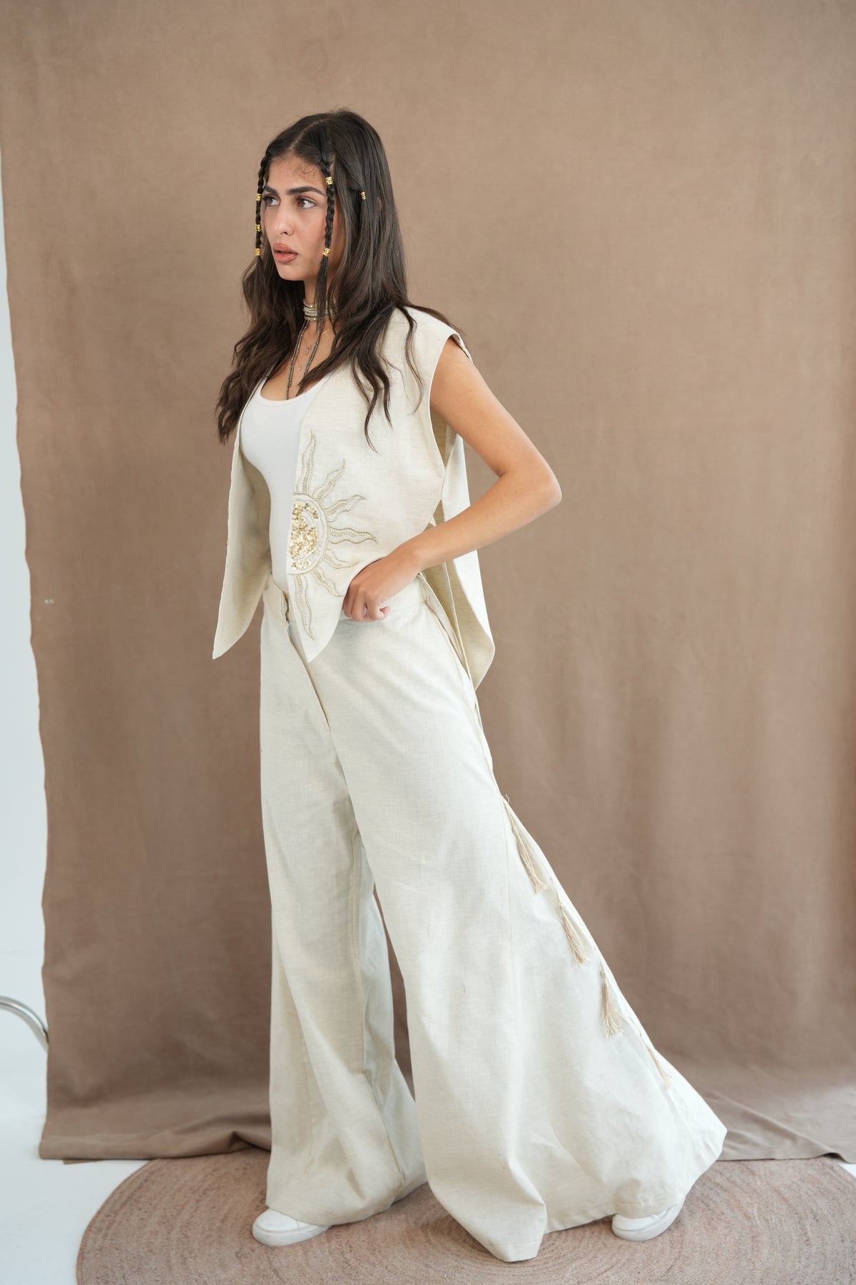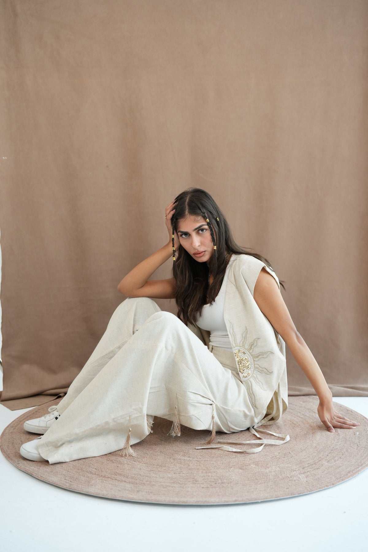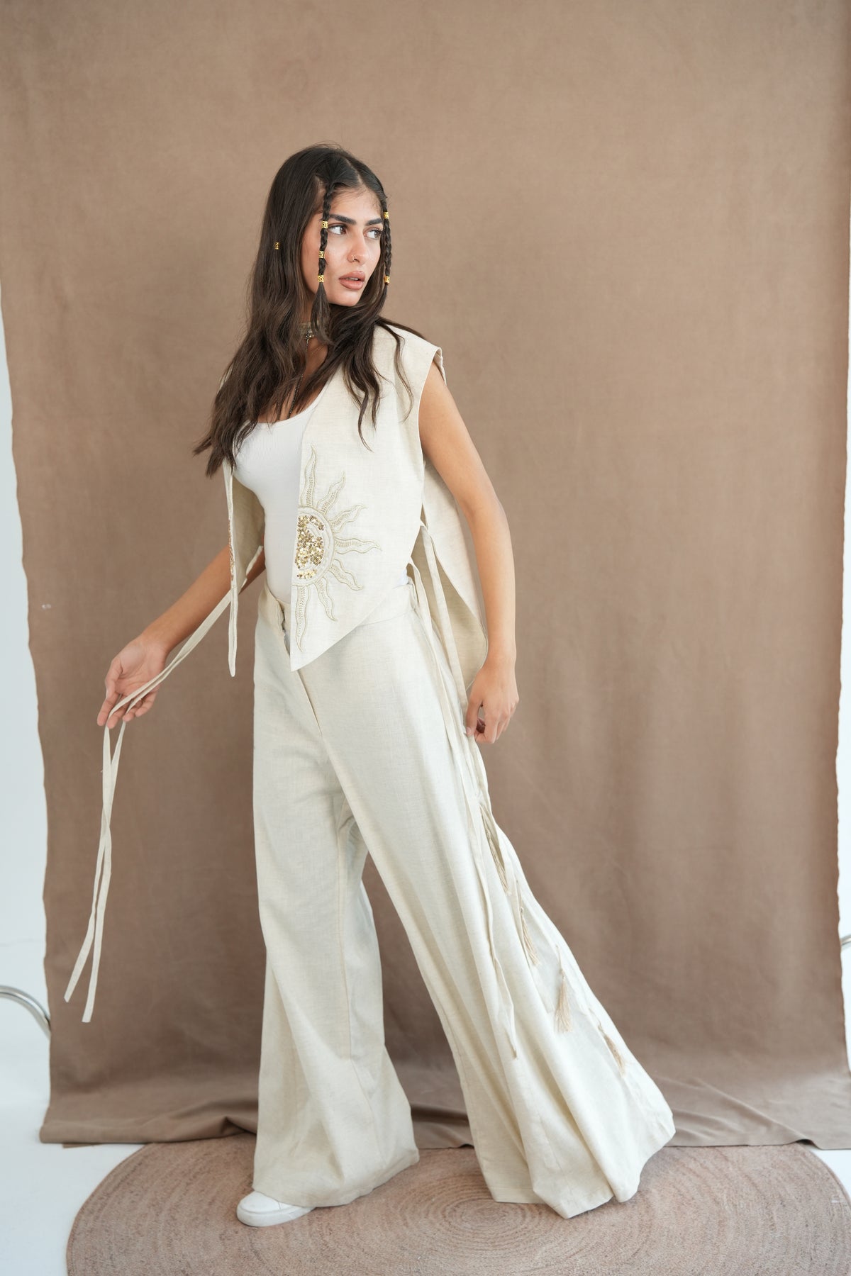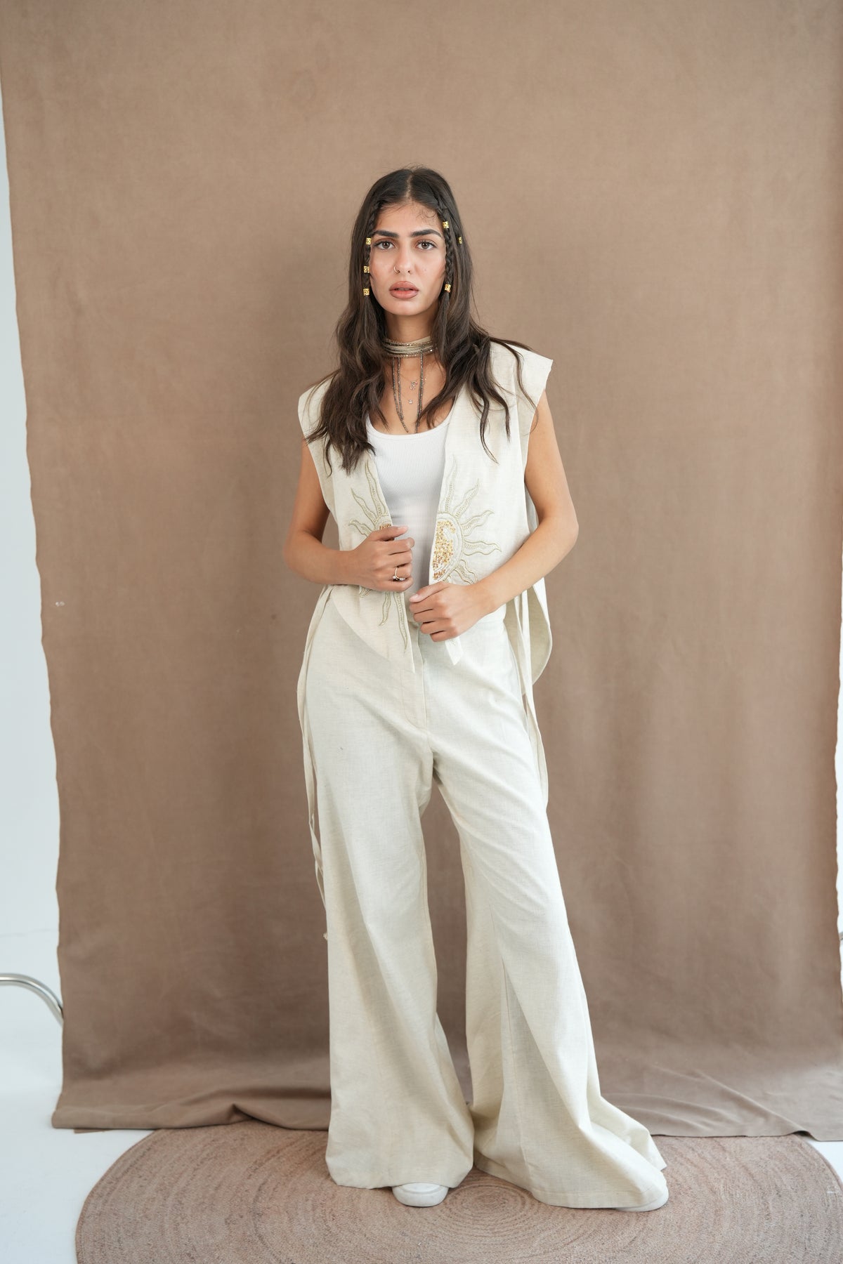 Creme set with sun embroidery