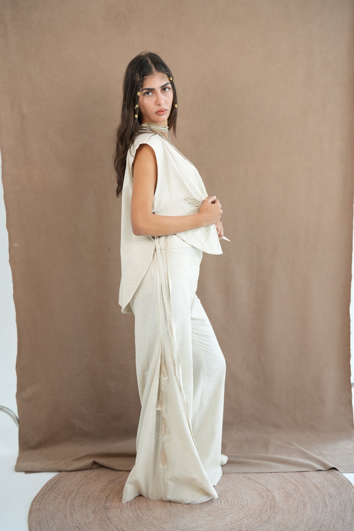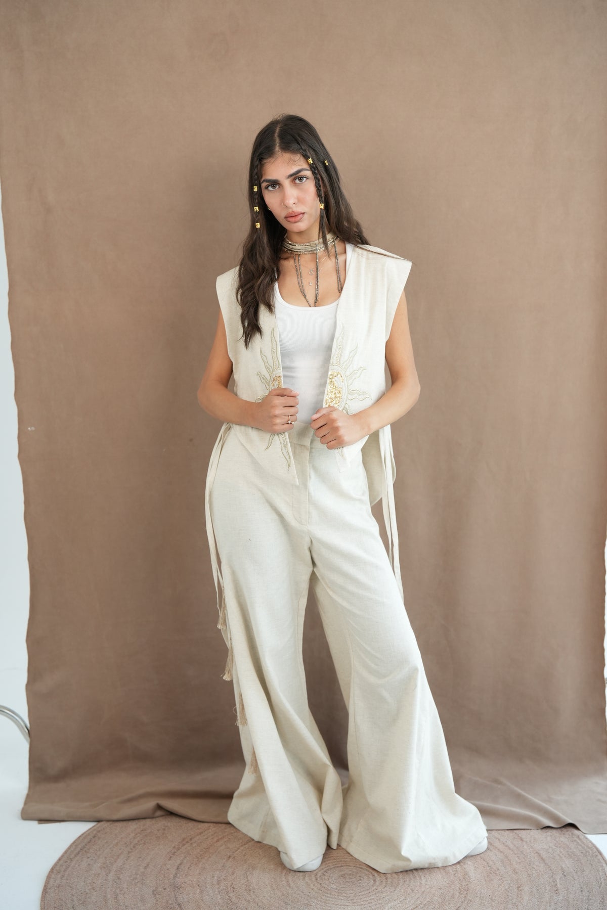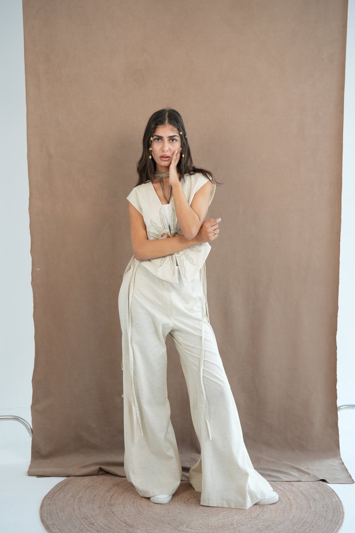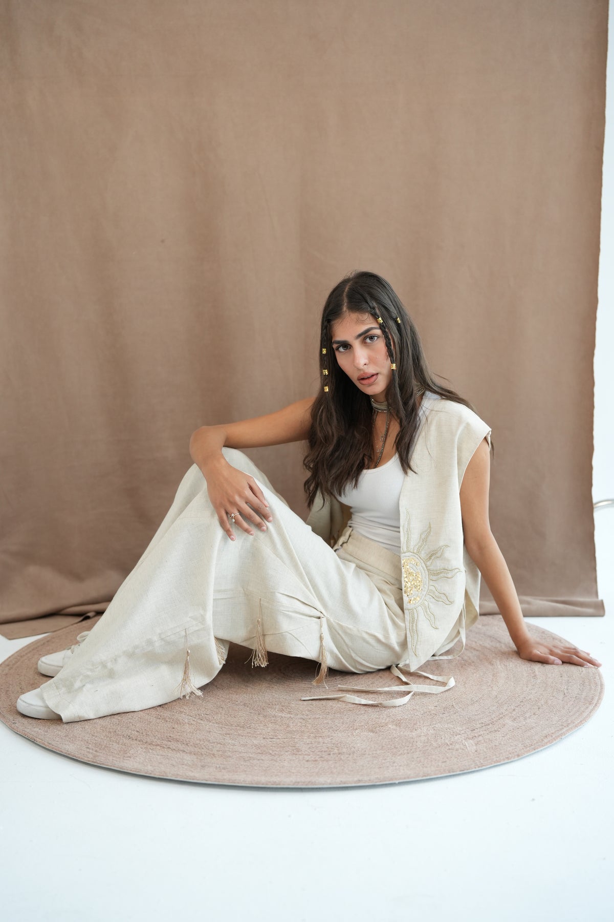 Creme set with sun embroidery