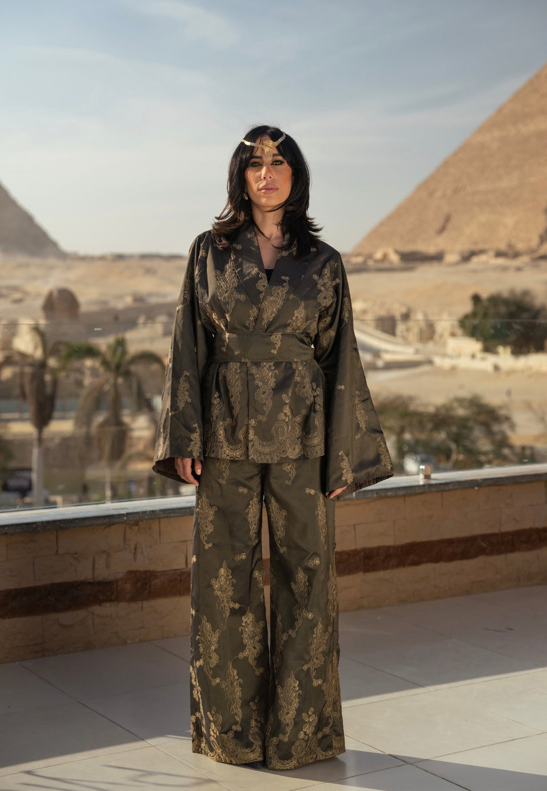 Brown comfy set with lace cuffs