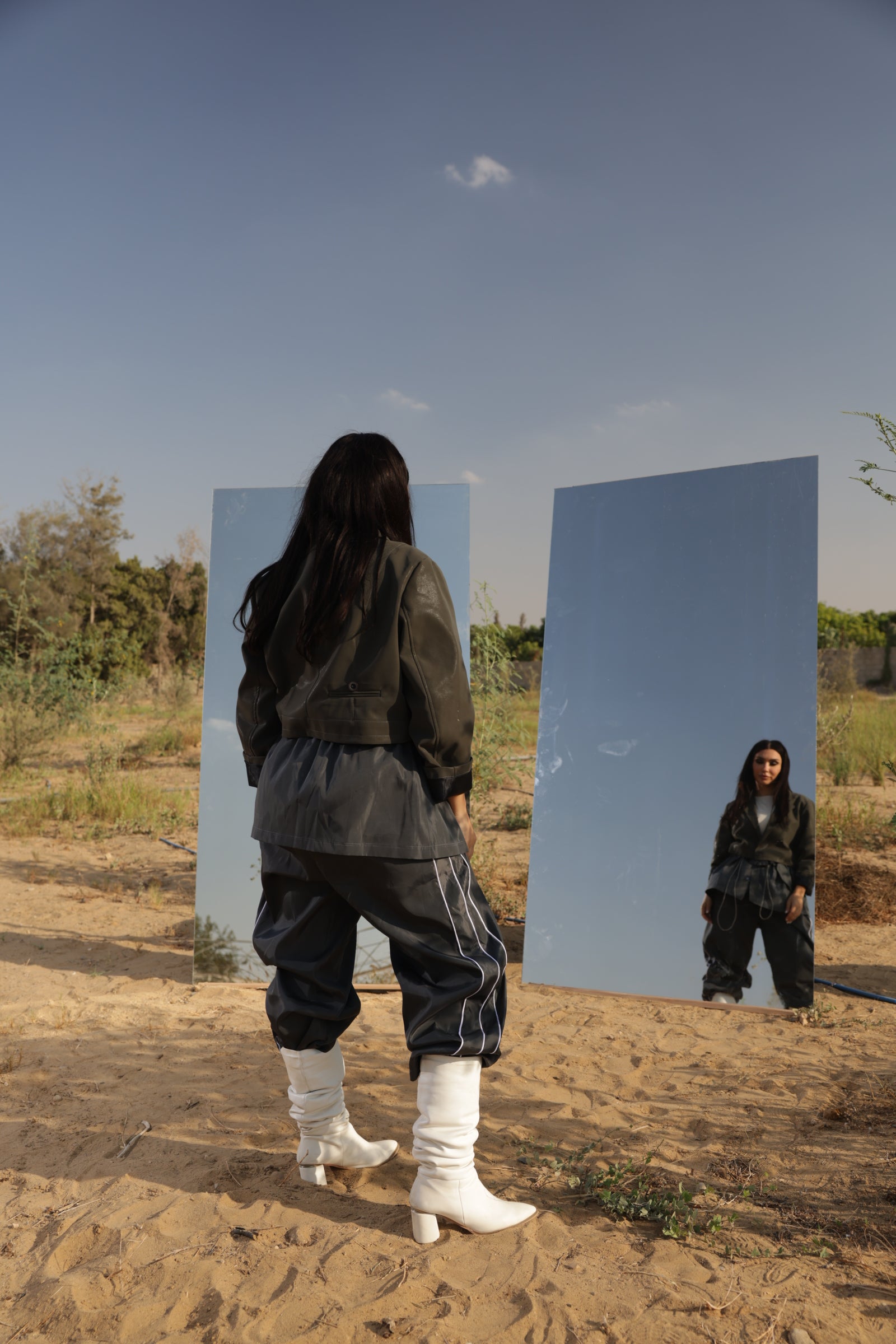 A detachable grey jacket combining premium leather with a sand washed fabric extension. Structured yet versatile, designed to transform with your style. Pair with the Axis Pants for the full statement.