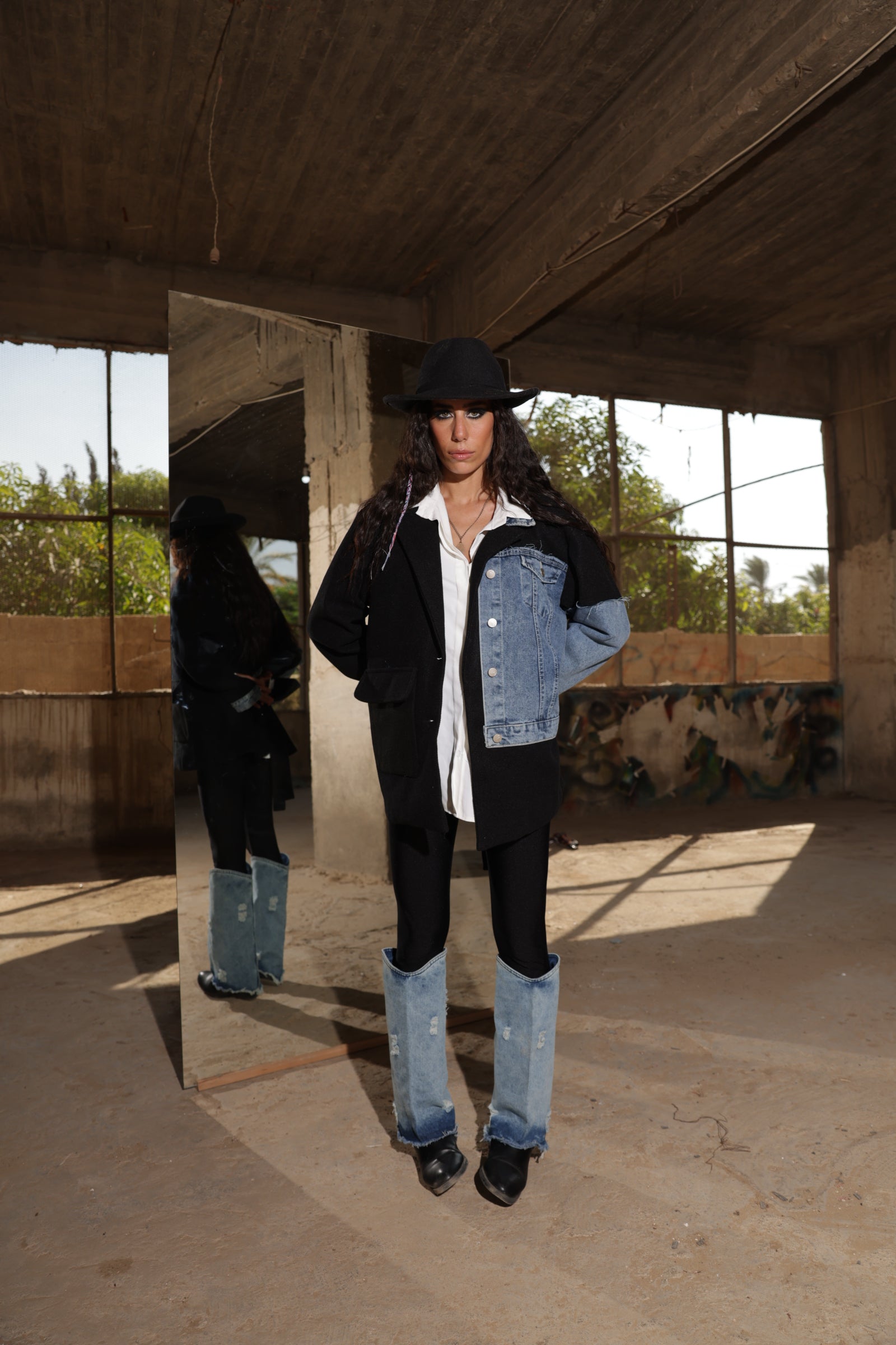 A black jacket with subtle denim touches, designed for bold style and effortless edge. Step out and own every glance—Onyx Noir is where modern sophistication meets street-ready attitude.
